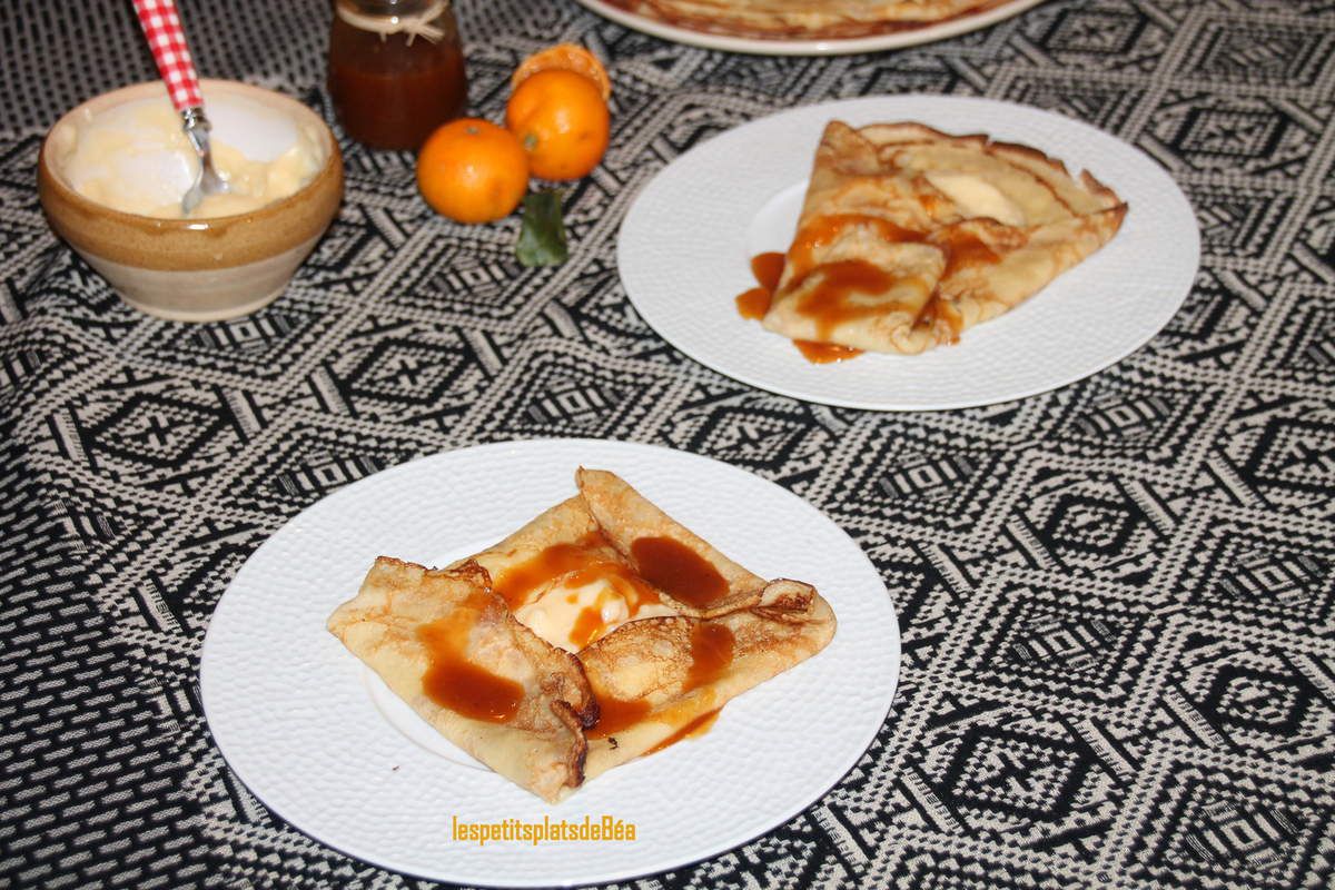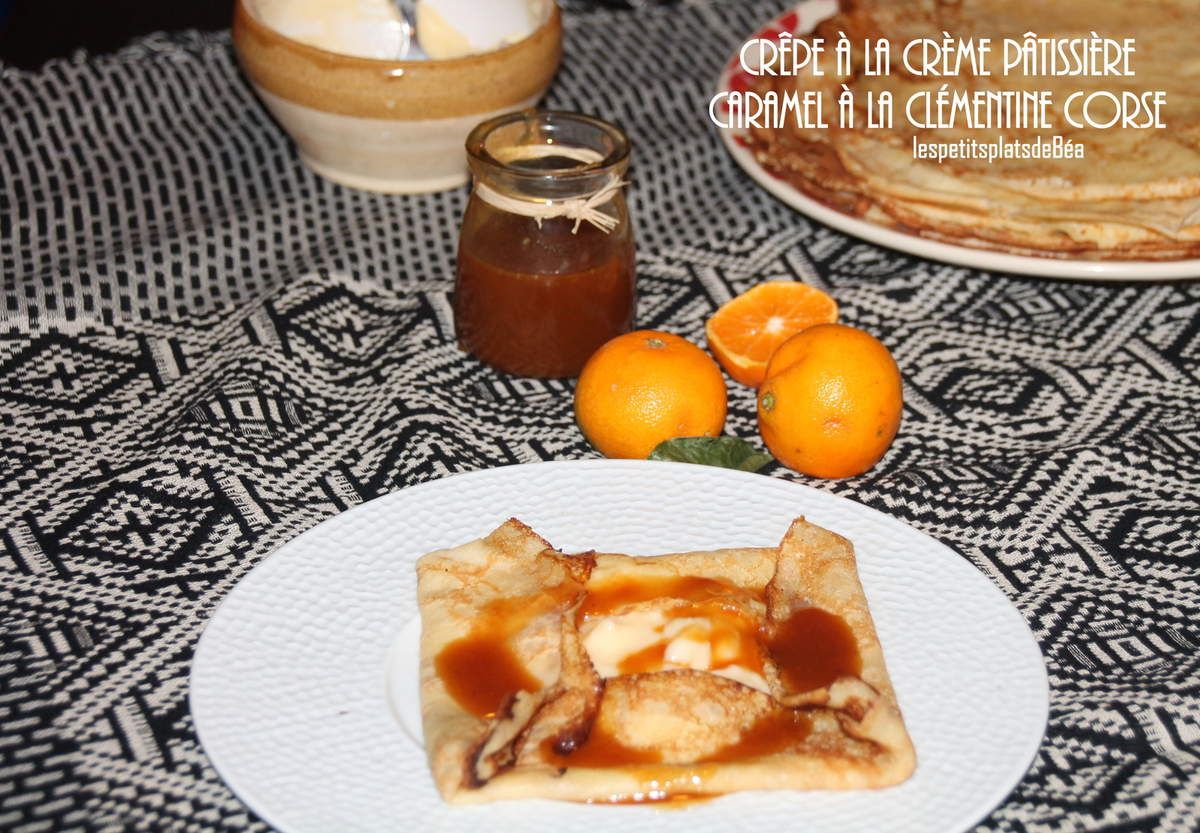 Ces crêpes gourmandes sont fourrées d'une bonne crème pâtissière et d'un caramel parfumé au jus de clémentine. Pour aller jusqu'au bout de cette saveur "clémentine", j'ai ajouté un petit verre de liqueur de clémentine corse dans ma pâte à crêpes.