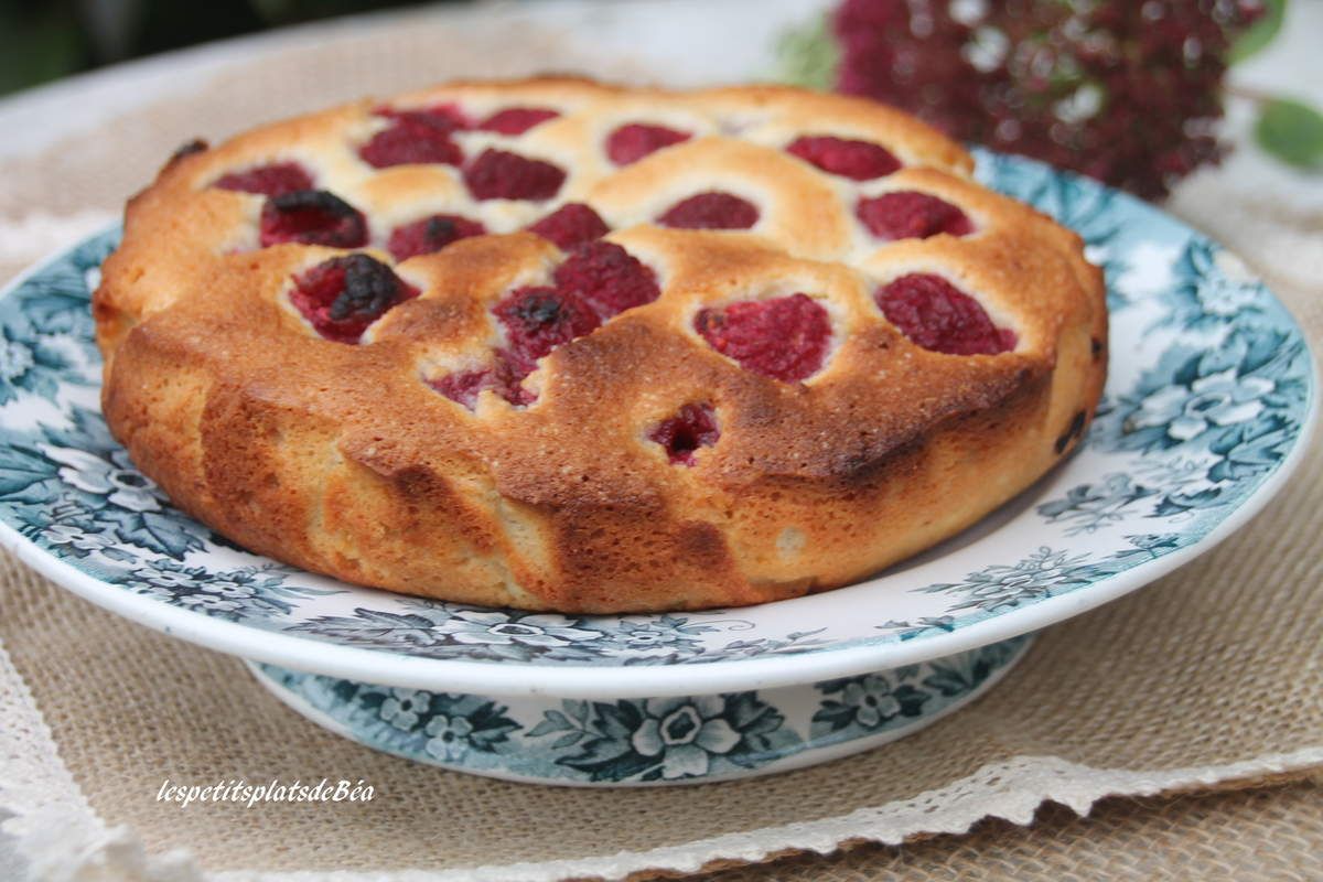 Ce gâteau est savoureux. Il a une texture légère et les framboises le parfument à merveille