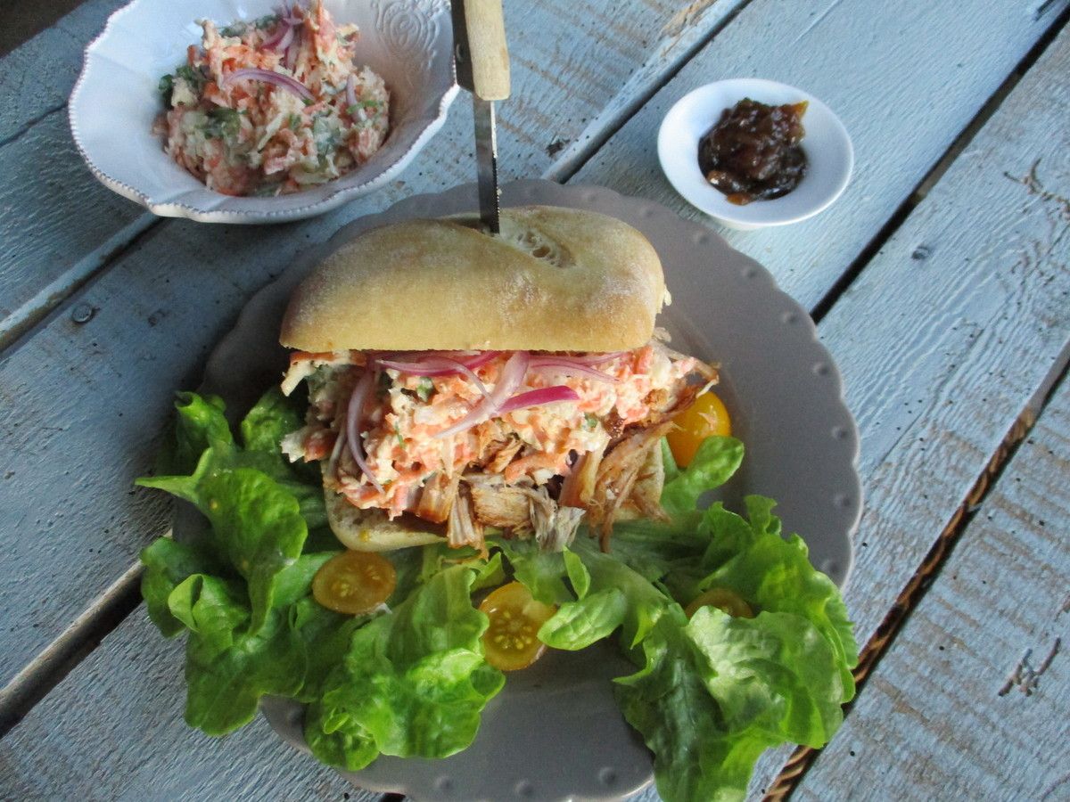 Ca faisait longtemps que j'avais envie de me lancer dans la confection de pulled pork , cette recette américaine de viande de porc confite dans une marinade sucrée salée, si cuite qu'on peut effilocher la viande. Alors pour aller jusqu'au bout d'une recette américaine, j'ai choisi de servir cette viande dans un pain burger et pour la part de légumes, une salade coleslaw dont l'histoire dit qu'elle a été créée par des hollandais émigrés aux Etats Unis et qui cultivaient des choux à New York