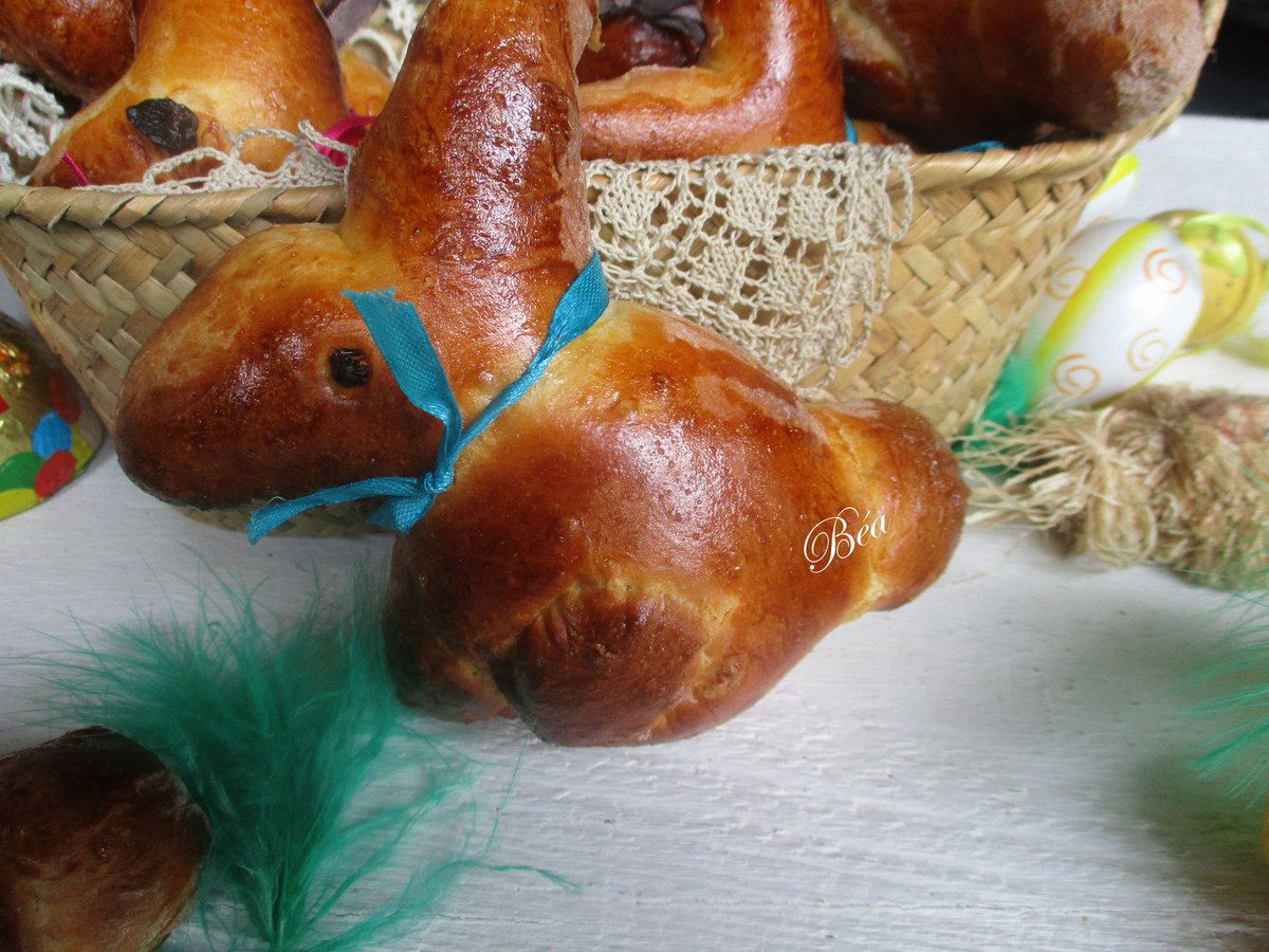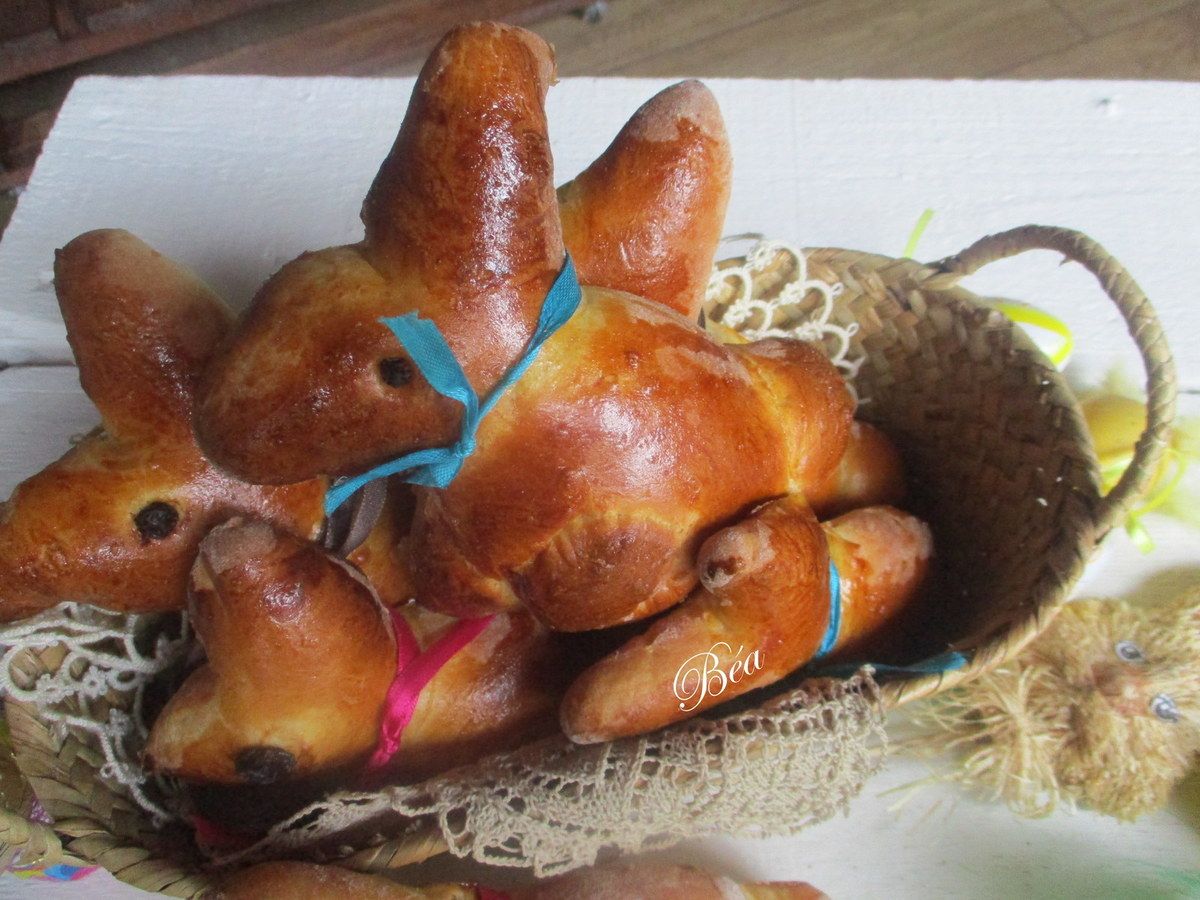 Contrairement à certaines préparations briochées où l'on doit laisser pousser encore la pâte après le façonnage ici on cuit les lapins juste après leur façonnage pour éviter qu'ils ne se déforment.